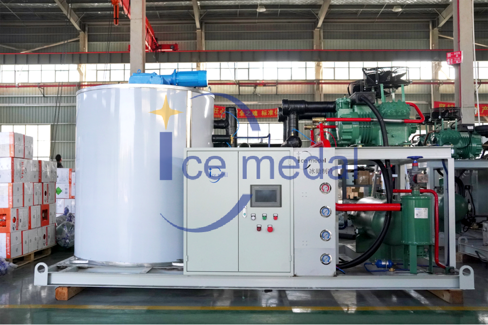 目前3臺(tái)10噸片冰機(jī)及1臺(tái)5噸片冰機(jī)都已經(jīng)過(guò)組裝調(diào)試,準(zhǔn)備打包發(fā)貨。